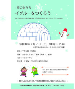 平岡公園では2月7日土曜日に「雪のおうちイグルーをつくろう」を開催いたします。