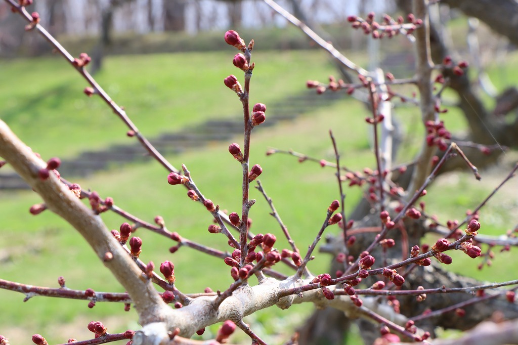 白梅の基準木の状況。もう少しで咲きそうです。