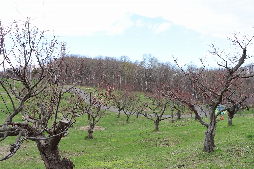 平岡公園の梅林について、白梅の基準木はまもなく開花となる状況ですが、