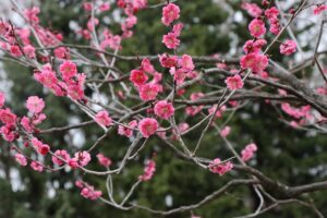 日当たりの良い場所など、基準木より早く咲き始めたウメもあります。
